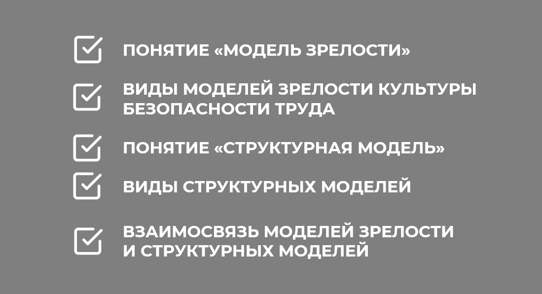 Участники вебинара получили представление о структурных моделях культуры безопасности труда, которые принципиально отличаются от описанных выше моделей зрелости.