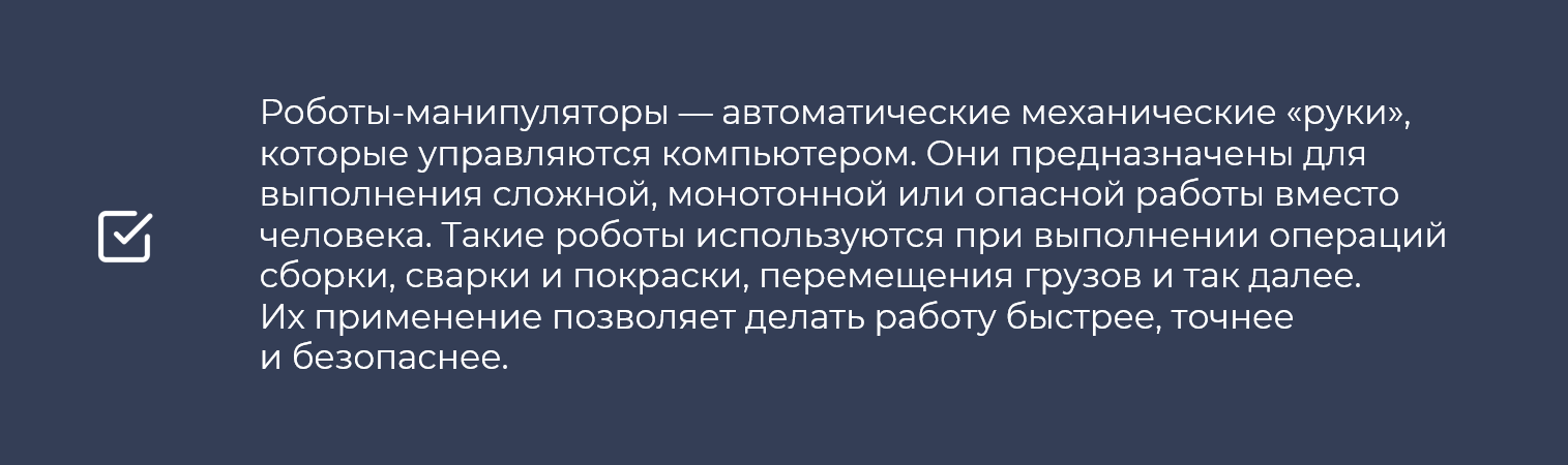 — передачи машинам рутинных операций, сопряженных с риском травмирования;