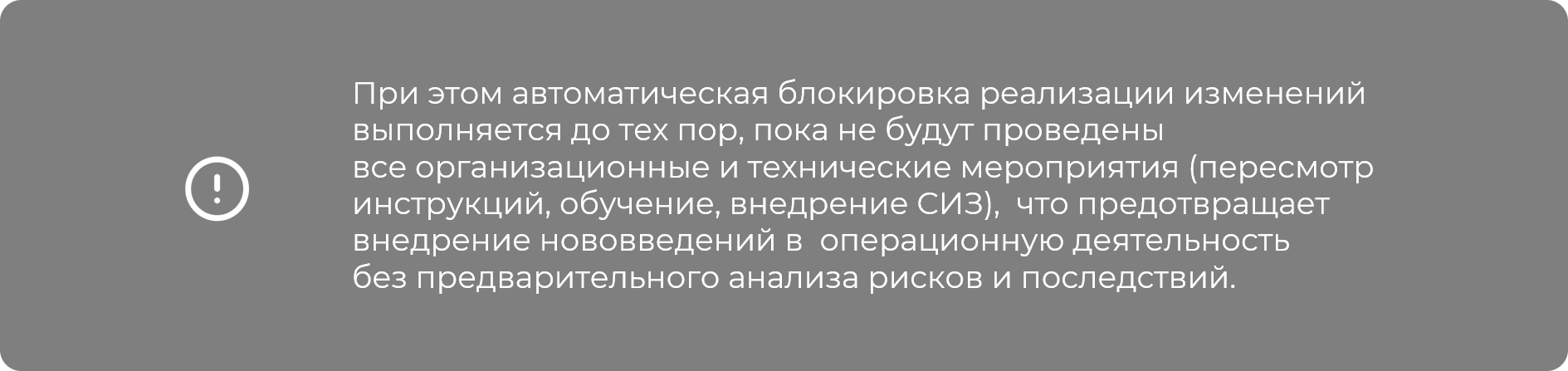 Заявка на приобретение нового оборудования, корректировка технологической карты или изменение штатного расписания запускают цифровой сценарий оценки влияния на профессиональные риски. В рамках такого сценария система анализирует следующую информацию: