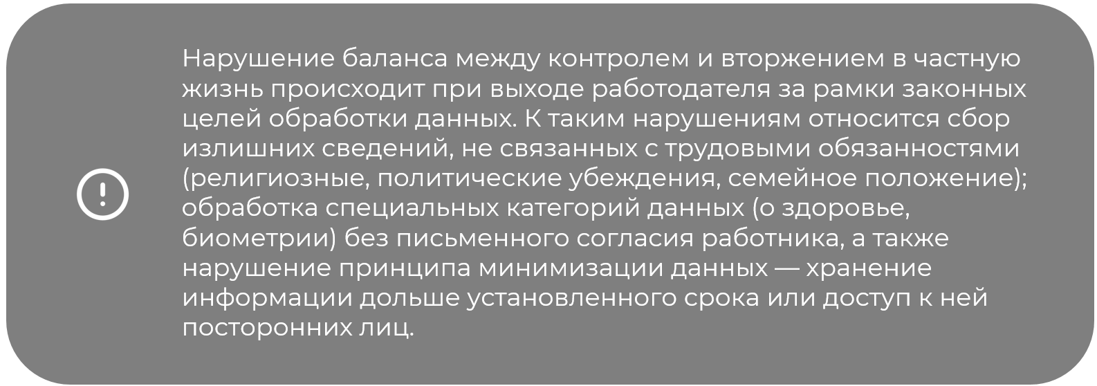 Защита персональных данных. Баланс между контролем работодателя и правом работника на частную жизнь может быть достигнут путем законодательного закрепления принципов пропорциональности и минимизации собираемых данных. Целесообразно ввести обязательное информированное согласие работника на обработку его биометрических данных, получаемых с носимых устройств, с указанием целей, сроков и способов обработки. Также требуется нормативно определить границы допустимости видеонаблюдения на рабочих местах, включая зоны, где применение данных технологий запрещено.