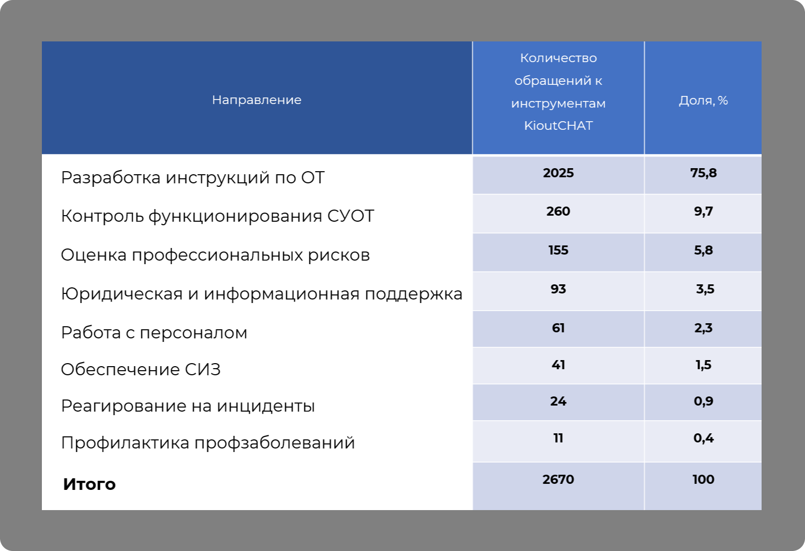 Объем взаимодействия с KioutCHAT показывает: ИИ стал для ключевым элементом повседневной работы специалистов в области охраны труда, где все под рукой — от консультаций до аналитики.