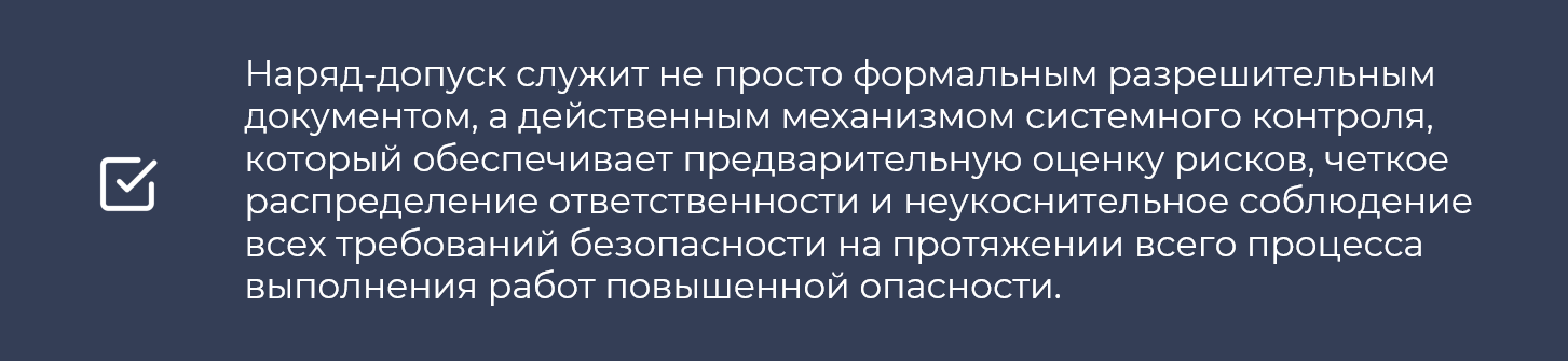 В документе подробно описывается содержание и характер предстоящих работ повышенной опасности (огневых, высотных, газоопасных и так далее). Такое описание позволяет каждому участнику работ осознавать не только суть и объем предстоящих действий, но и связанные с ними потенциальные опасности.