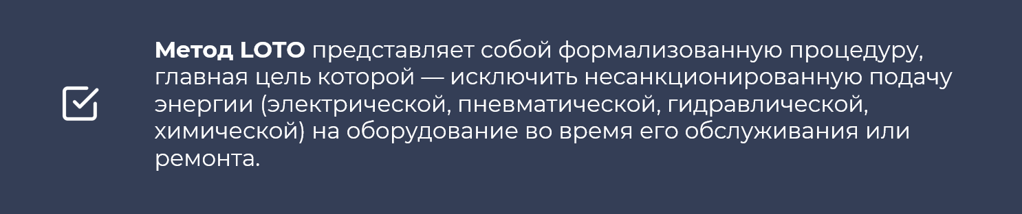 Техническая сущность метода LOTO напрямую соответствует положениям пункта 89.3 Рекомендаций № 926, так как он представляет собой инженерный метод, направленный на обеспечение изолирования людей от источника опасности. Этот физический барьер является средством коллективной защиты (далее — СКЗ), предотвращающим несанкционированный запуск оборудования или высвобождение энергии, которые угрожают жизни персонала.