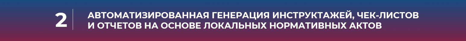 При подготовке отчетности ИИ выполняет роль не только сборщика данных, но и аналитика, стратега. Система позволяет формировать отчеты по результатам проверок для различной целевой аудитории — как на линейном уровне, так и для высшего руководства, а также комплекты документов, определяющих или регистрирующих процессы СУОТ.