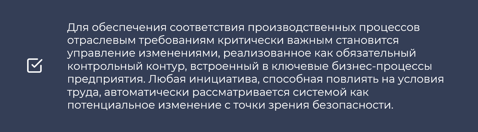 Поддержка внутреннего аудита и подтверждения соответствия производственных процессов отраслевым требованиям обеспечивается формированием цифрового следа событий, автоматизированным сбором доказательной базы при расследованиях, а также проведением предварительного анализа связей с историческими данными. Встроенное управление изменениями позволяет оценивать влияние любых инициатив на риски до их реализации, а принципы деперсонализации и ограничения данных обеспечивают правовую и этическую корректность, а также сохранность персональных данных при передаче медицинской информации и проведении аналитики.