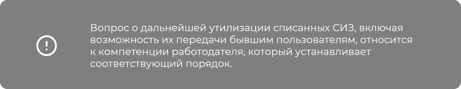 В данном разъяснении не содержится запрета на передачу списанных СИЗ работникам, однако подчеркивается, что такая процедура должна быть регламентирована внутренними документами организации, при этом обязанность работника возвратить средства защиты по окончании срока их службы сохраняется.
